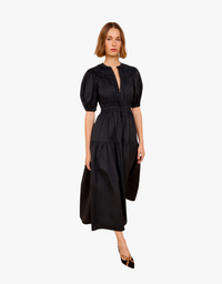Ulla Johnson Othella Short Sleeve Midi Dress in Noir