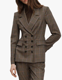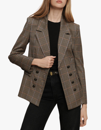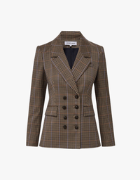 Claude is a chic double-breasted blazer in Italian check plaid with a slim, nipped waist and striking exaggerated lapels. Perfect for pairing with jeans and ankle boots for an effortlessly polished look.