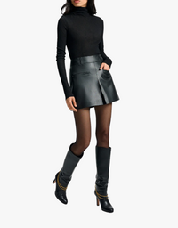 The Veronica Beard Pavaline skirt in black offers a chic, adaptable style that suits any occasion. Made from soft vegan leather, this mini skirt showcases a timeless A-line shape with a discreet front slit for comfort. Designed with front welt pockets and belt loops, it adds practical detail to its sleek design.