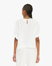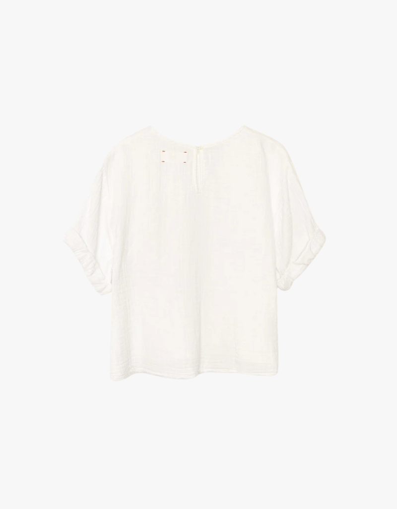 Uncover the essential Carson Top, made from soft, double-faced cotton gauze that provides a light, crinkled texture. Designed with a scoop neck, rolled sleeves, and a keyhole button-back, this popover top is a versatile piece for your wardrobe.