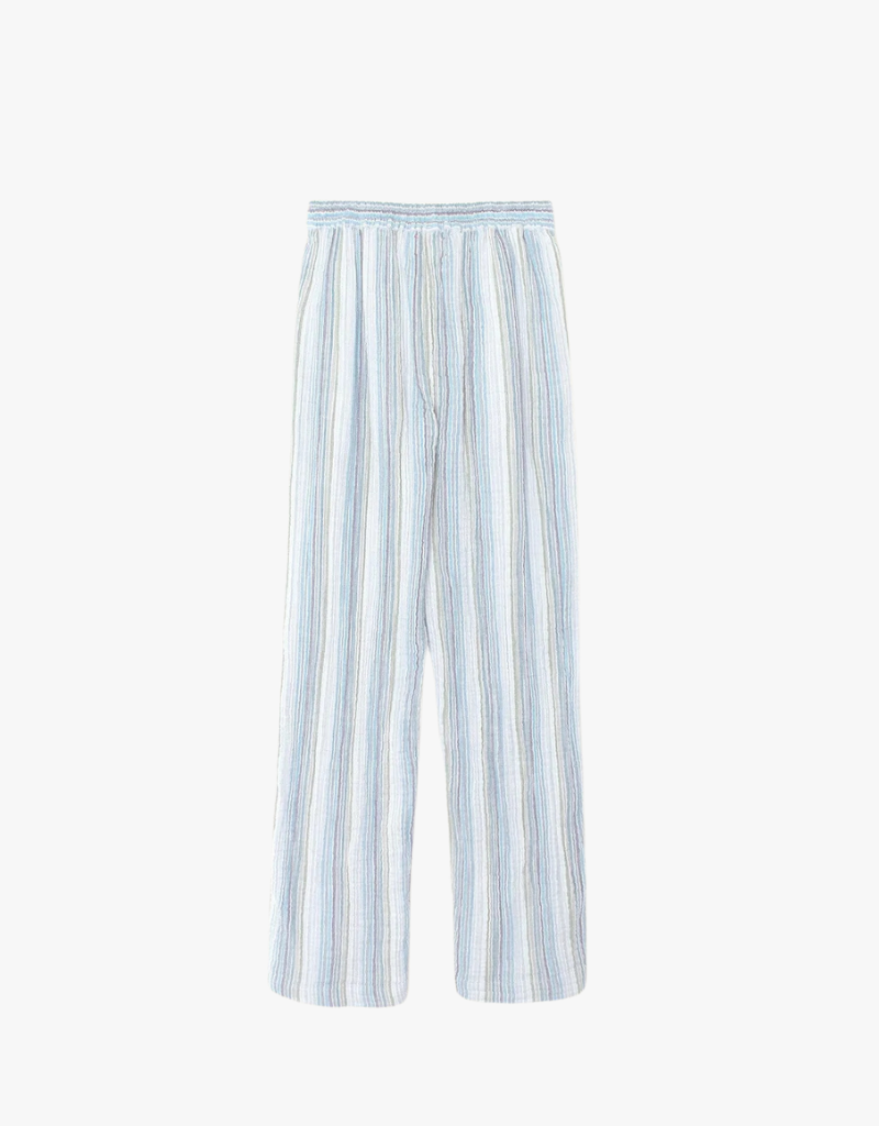 Experience the joy of stripes with Dylan Pants. Updated this season in soft, crinkled double-faced cotton gauze, these straight-leg pants feature an elastic drawstring waist and side seam pockets.