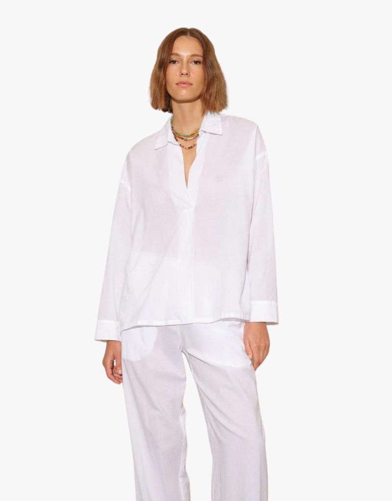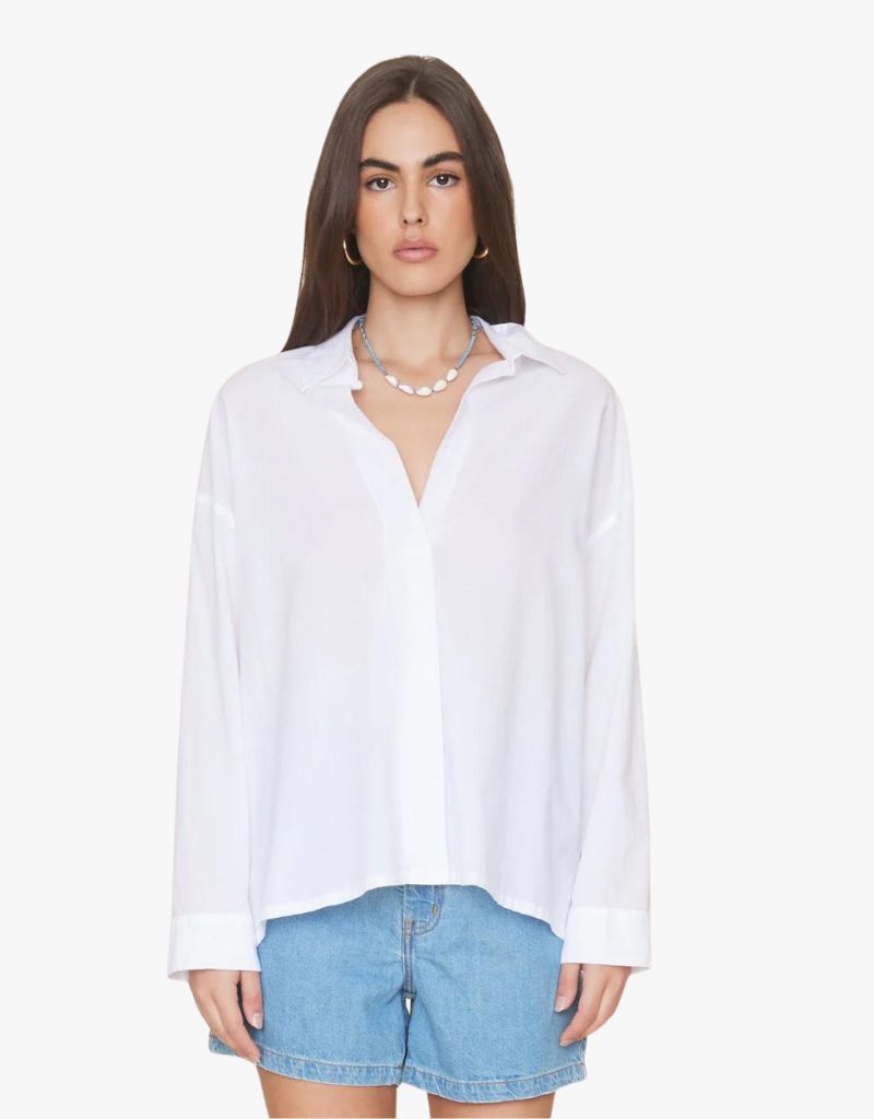 Experience everyday elegance with the Henry Top. This versatile white blouse features long sleeves, adding a touch of sophistication to any outfit. You'll live in this piece!