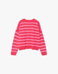 Experience the charm of stripes with the updated Lela sweater, crafted from a cozy baby alpaca blend that adds softness and warmth. This pullover features contrasting stripes, relaxed drop shoulders, and a ribbed crew neckline, cuffs, and hem for a flattering fit. Embrace comfort and style effortlessly with this season’s must-have sweater.