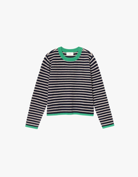 Indulge in the Maxwell sweater. New this season, this Striped Delight features an ultra-soft cashmere-wool blend. The classic crewneck is refined with eye-catching contrast color trim at the neck, cuffs, and hem. See the refined trim and feel the softness today!